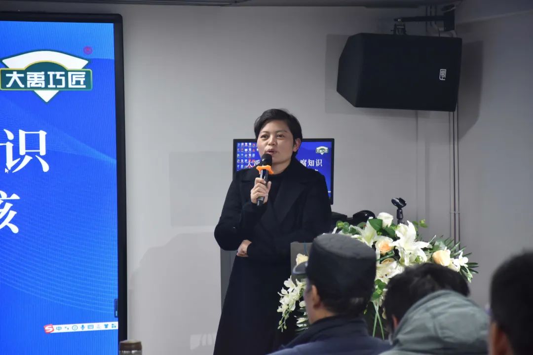 銷售會議結束后,湖南大禹巧匠總經理詹苗女士首先登臺發言,總結整個會議的精神,同時針對2023年全年的情況制定了新的方向,提出了哪些產品需要調整,哪些方面需要突破,哪些部門需要改革。