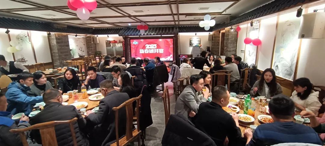 在會議落幕后,公司為所有的家人們準備了一頓豐盛的宴席,為感謝所有家人2022全年的付出。大禹巧匠人借此齊聚一堂,共舉酒杯,一起辭別2022,迎接2023。